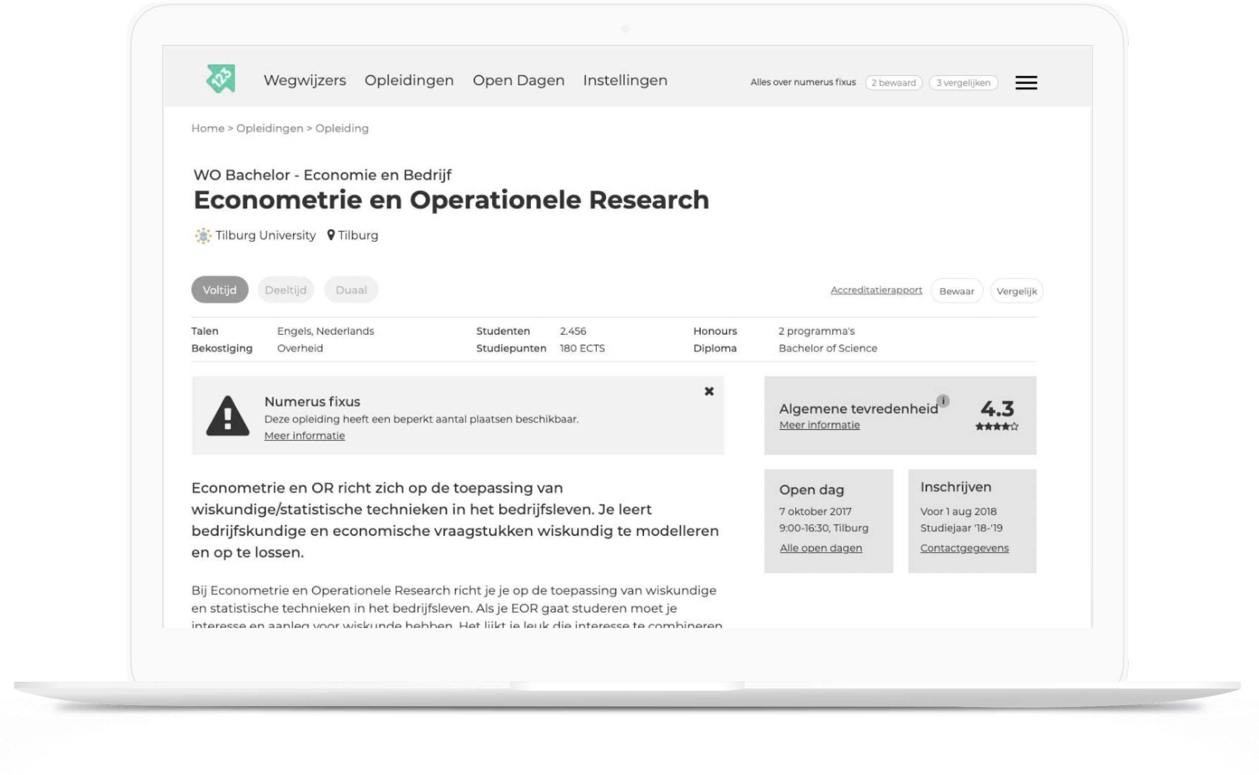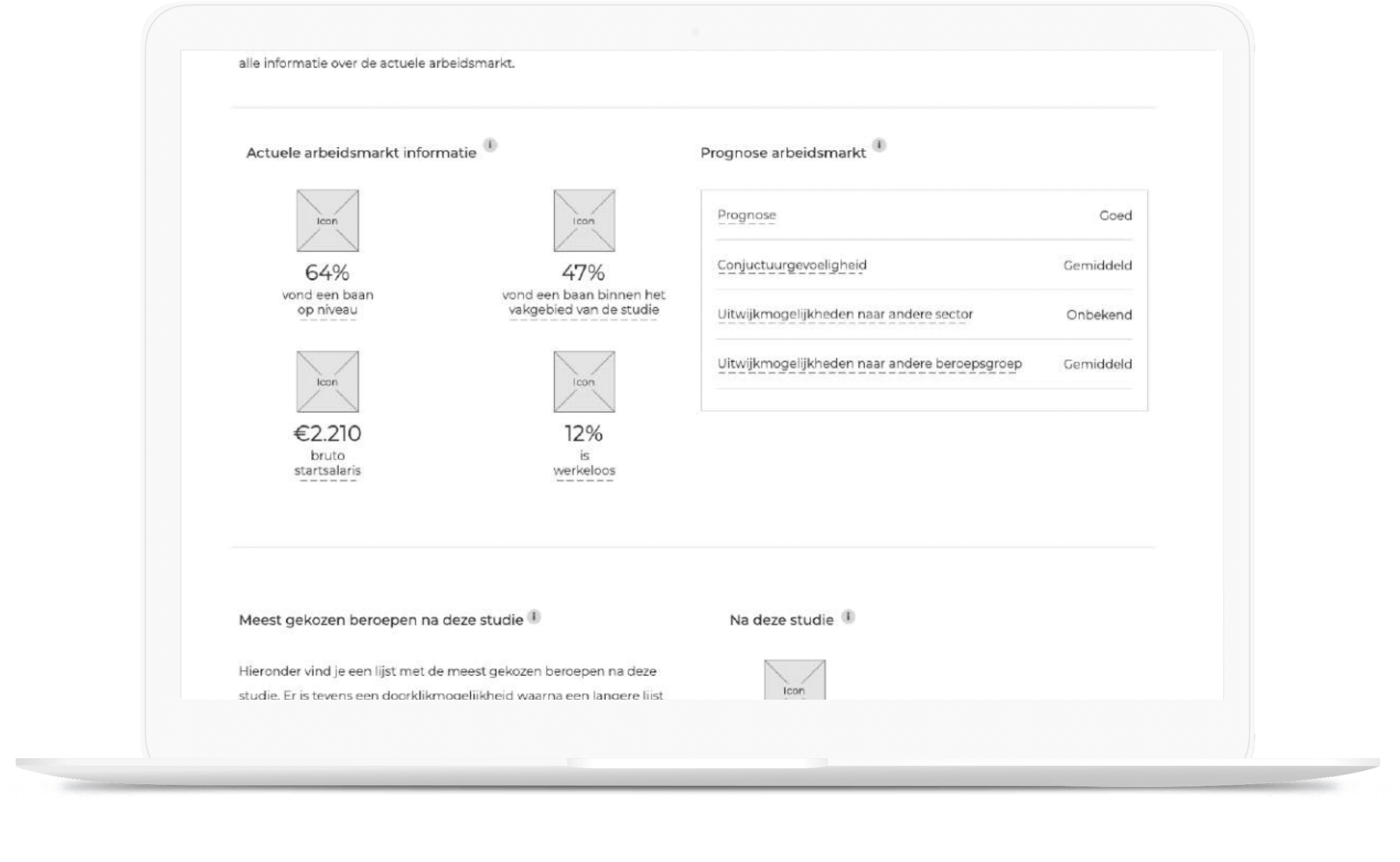 De opleidingspagina vormt het hart van de website. Hier komt alle data die Studiekeuze123 verzamelt bij elkaar. De pagina is uitgebreid getest onder middelbare scholieren zodat we zeker wisten dat zij er goed mee overweg konden.
